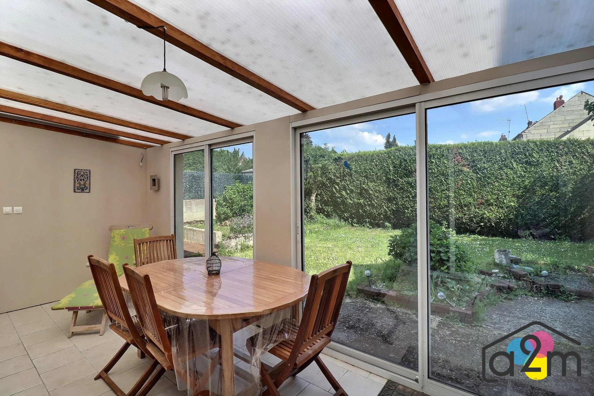 Une entrée ouvrant sur un chaleureux salon, une salle à manger lumineuse, un couloir desservant une salle de bain avec toilettes, un cellier fonctionnel, une cuisine aménagée et équipée donnant accès à une véranda conviviale.